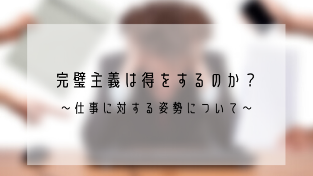 完璧主義は得をするのか? ~仕事に対する姿勢について~