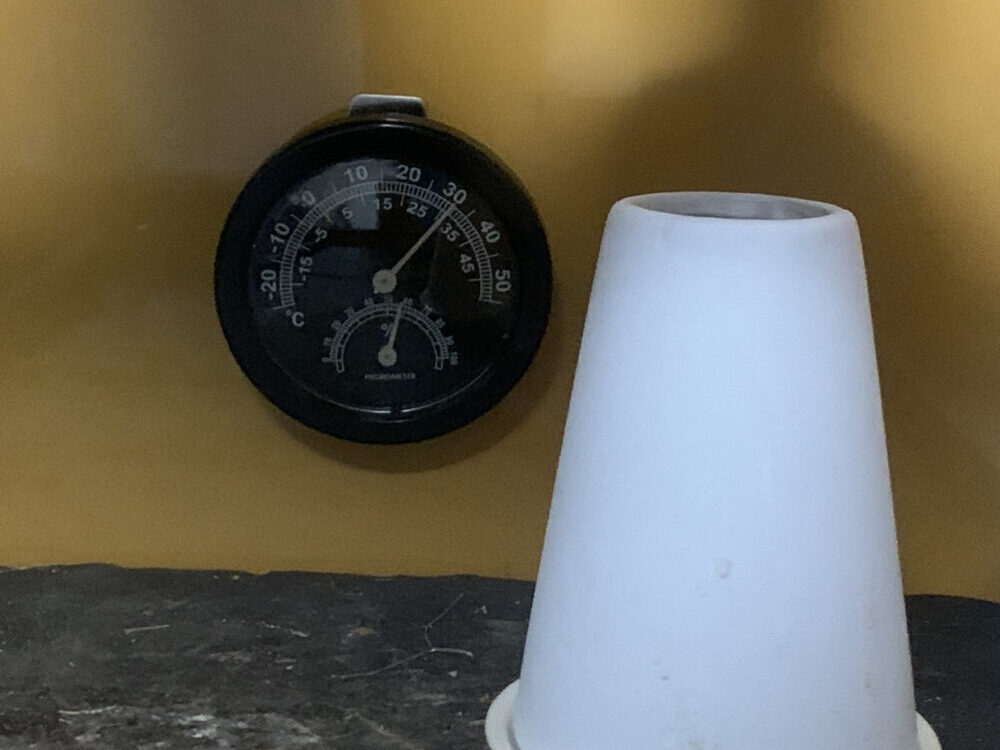 なお、水が冷えすぎるのを防ぐために、セラミックヒーターの熱の届く範囲に置くようにしています。
