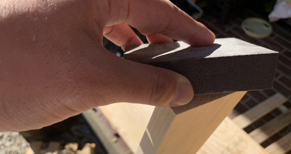厳密に言うと必須工程ではないですが、カットした木材はささくれ立っているところもあるので、怪我をしないよう気になるところだけ削ります。