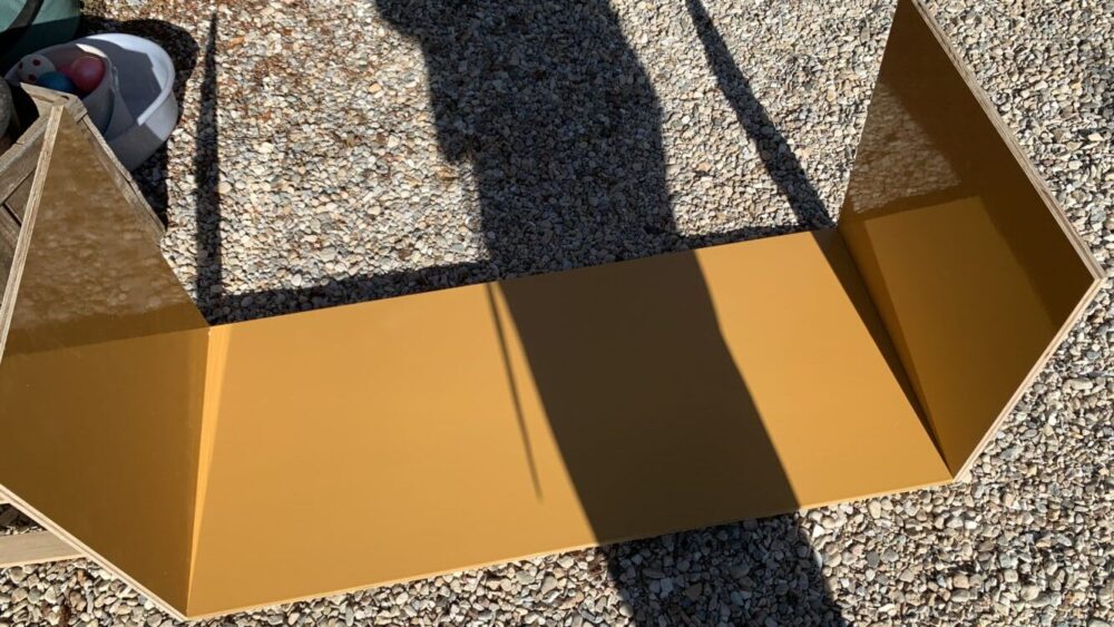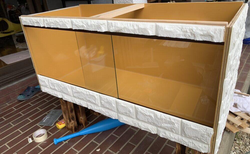今回の素材はパネコートが中心なので、塗装してあるところはある程度の耐水性がありますが、板の継ぎ目や裏面などは水に濡れると変形や腐敗してしまいかねません。