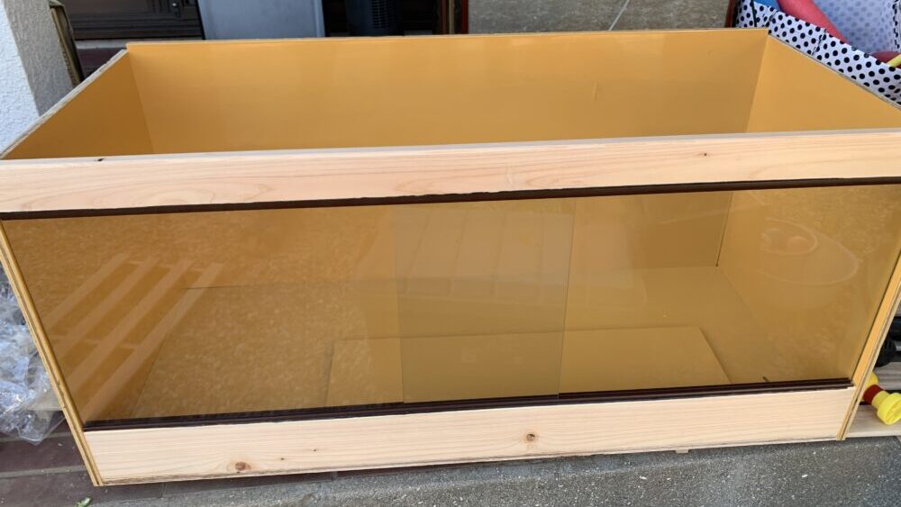 人によっては既製品だったり、庭や部屋を解放している方もいらっしゃるかと思いますが、うちではリクガメを飼育するのに自作のケージを使用しています。